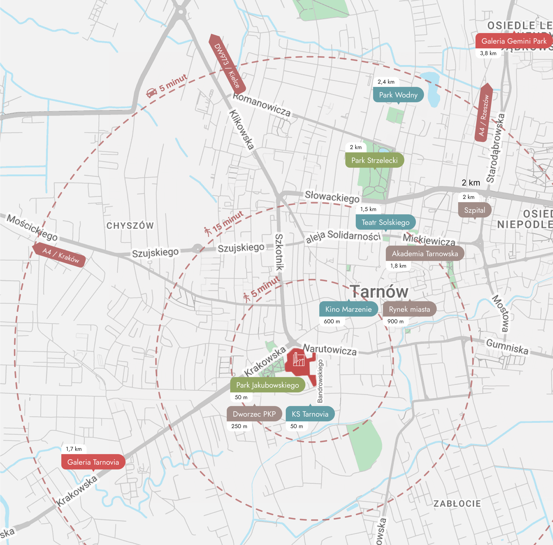 Browary Tarnowskie powstają w samym sercu Tarnowa – w sąsiedztwie miejskiego parku i przestrzeni rekreacyjnych. Doskonale skomunikowane z resztą miasta oraz z Krakowem i Rzeszowem – dzięki bliskości dworca kolejowego i autostrady A4. To miejsce, które łączy historię z nowoczesnością, oferując wyjątkowy punkt na mapie Tarnowa – dynamiczny, otwarty i pełen możliwości.