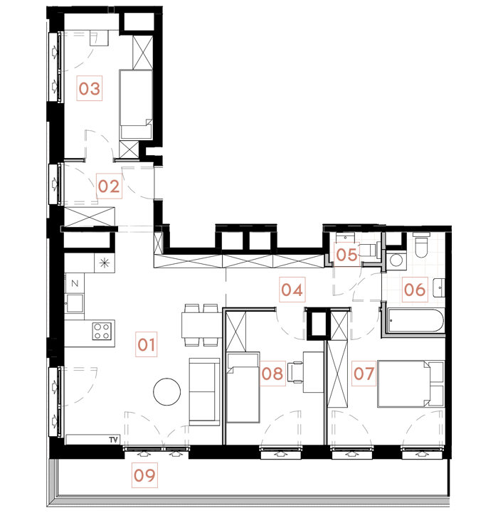 Budynek 1.1| 3|Piętro 6|4 Pokoje